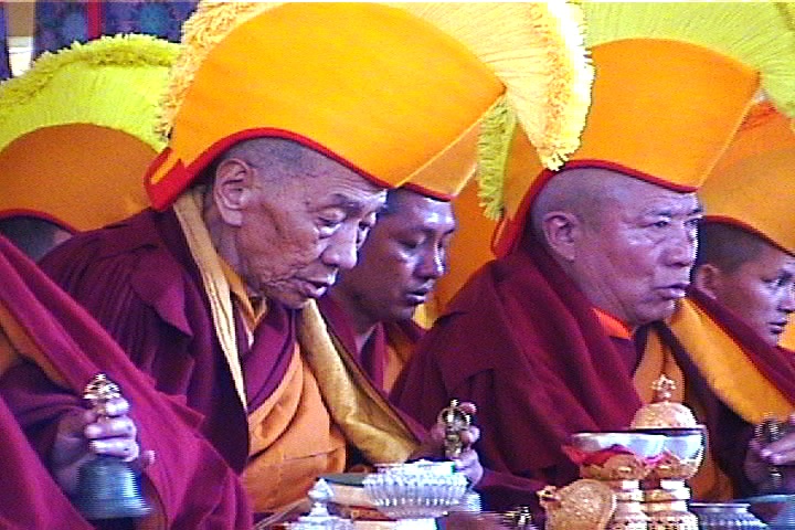 Moines Tibétains lors de la cérémonie du nouvel an Tibétain qui débute à 4h30am. Nous étions privilégiées d’y assiter, en première loge!